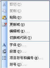 四.目录的更新:如果以后在文章中的某处插入了新的内容,则其后的所有页码将全部发生变化,如果没有采用样式产生相应目录,还须将目录的页码全部手工更改一遍,使用以上方法后,只须选取目录,点鼠标右键,选择更新域,则目录的目录标题及相应页码将全部被更新。