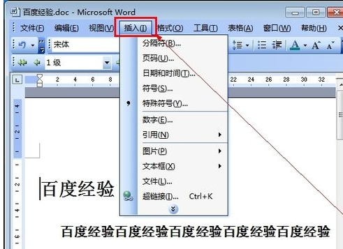 2、点击菜单栏上的“插入”