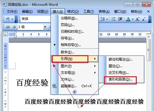 4、把光标移到文章最开头你要插入目录的空白位置,选[插入]–[引用]–[索引和目录]