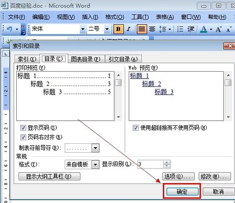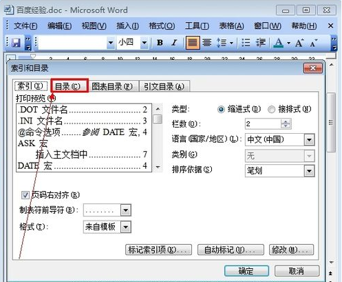 5、选第二个选项卡[目录],然后点右下的确定。就OK了。