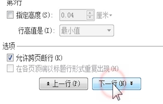 7、点击“上一行”或“下一行”对其他行的高度进行操作即可完成 。