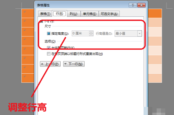 5、勾选“指定高度”调整大小可精确对行高进行设置。