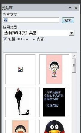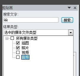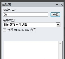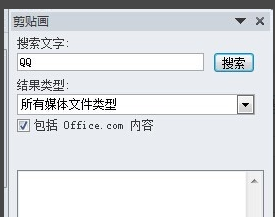 2,在“剪贴画”窗格的“搜索”框中,输入描述所需剪贴画的单词或词组,或者输入剪贴画的文件名或者部分文件名。