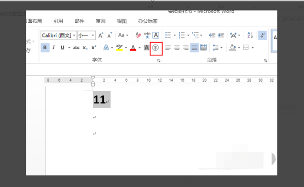 2、输入11后,选中内容,找到红色字符选框。