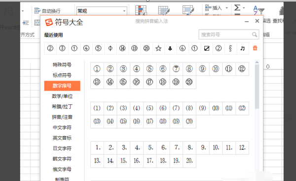 6、或在搜狗输入法中,找到“工具箱”-“符号大全”-“数学序号”,有①到⑳的圆圈符号,超过20后按上述操作。