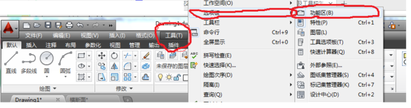点击菜单栏中的“工具”“选项板”“功能区”即可!!