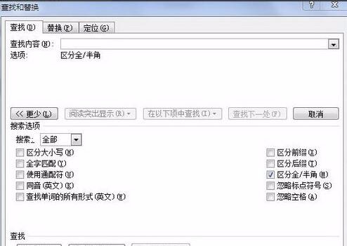在打开的“查找和替换”对话框中单击“更多”按钮,以显示更多的查找选项,如图所示。 单击“更多”按钮