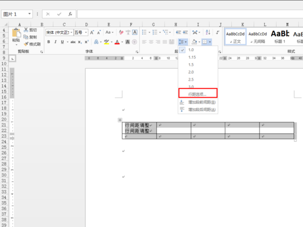 word表格中文字的行间距怎么调