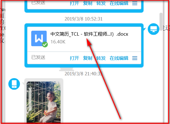 5、最后在接收界面中单击收到的Word文档以查看它。