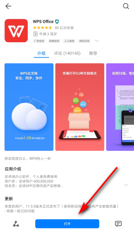 首先在手机中安装金山WPS Office手机版,下载安装即可。