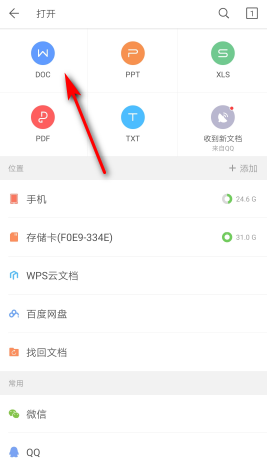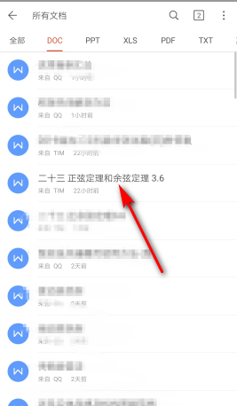 找到自己手机SD卡上的Word文档之后,点击Word文档名称打开即可。