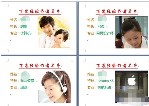 6 切换到已经做好的名片Word中,选定所需要的名片图片,然后使用“Ctrl+C”进行复制,接下来再切换到10个标签中的Word中,依次在每个标签中,将图片内容复制进去后,保存该文档即可打印成名片了。