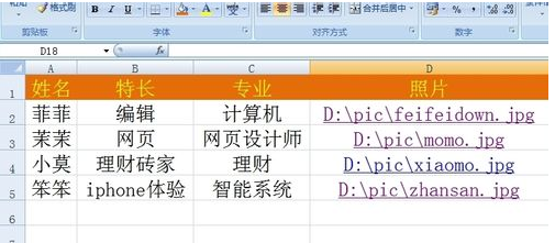 1、用户信息的准备。首先,需要利用Excel将制作名片所需要的信息以二维表格的形式全部输入其中。如图所示的原始用户信息统计表;
