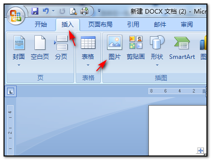3、在点击上方菜单栏中插入中的图片命令;