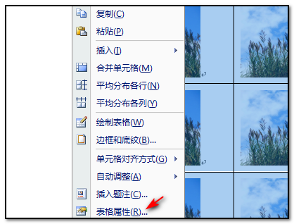 5、图片成功复制以后,选中表格和图片点击鼠标右键选择“表格属性”的命令;