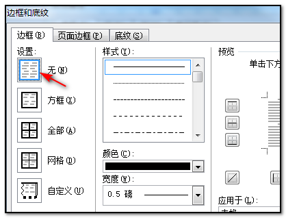 7、点击以后,在出现的界面中边框栏里选择无边框的命令;