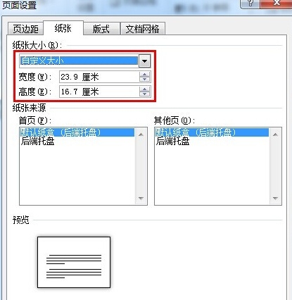 按证书的尺寸,设置页面大小。本例中,证书大小为23.9*16.7厘米。