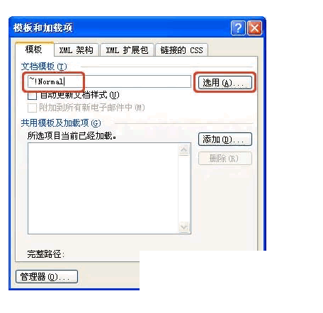 如果在C盘中找不到NORMAL,可以这样操作:进入Word安全模式,打开任一Word文档。选/(模板和加载项),按“文档模板” 后面的“选用”。把图框中的文件NORMAL用右键删除即可。 删除后如果重启Word不行,重启电脑即可。