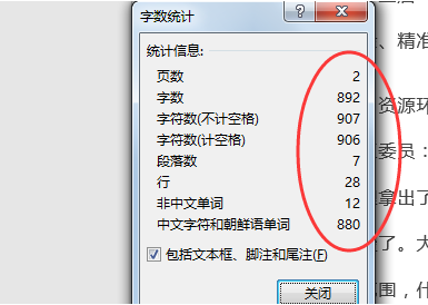 3、或者点击“字数统计”会出现下图中的详细统计数据。