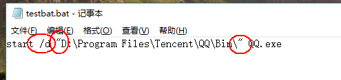 由于是在使用bat指令运行第三方软件,因此必须注意该程序所在的路径,并注意bat指令的写法,比如说加上/d,并在程序路径上加上英文半角引号