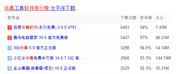 转载请注明出处51数据库 » 最好的杀毒软件排行 国内十大杀毒软件排行