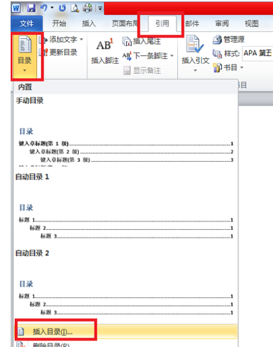 3、然后点击【引用】选项卡 -【目录】-【自动目录】。