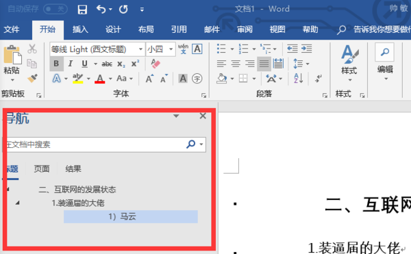 2、或者也可以看看导航窗格里面检查有没有漏掉的标题,如果正文标题的前方有个黑点,说明标记成功。(当然,打印的时候是不会显示出来的)