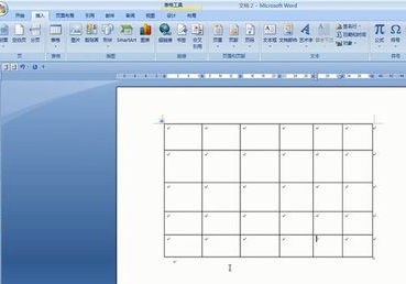 打开Word 2007,点击"插入"选择卡中的"表格下拉列表",然后在出现的图示表格中随意滑动来确定要绘制的表格的大小,最后点击以完成单元格的绘制工作。