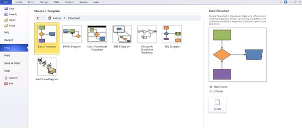 1、打开Visio软件。依次点击“File”,“New”,“Flowchart”,选择“Basic Flowchart”。