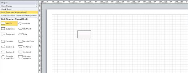 2、绘制流程节点。把绘制流程图所需“形状”,拖拽到绘图区。