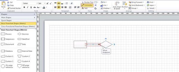 3、绘制流程线。选择“连接线工具”进行连线绘制。