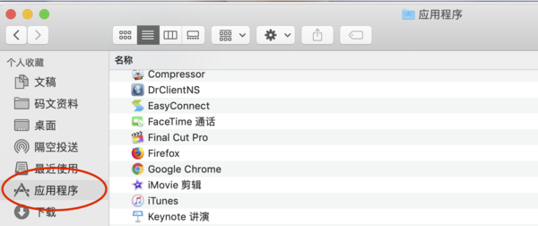 打开“访达”页面,点击左边的“应用程序”,进入应用界面。