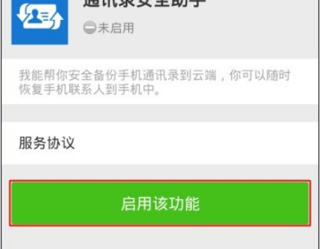 6.打开通讯录安全助手后,点击启用该功能即可。