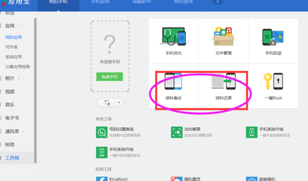 4)点击后我们就可以看到“进入安全助手”了,此功能方便我们上传通讯录到云端和恢复通讯录到手机。