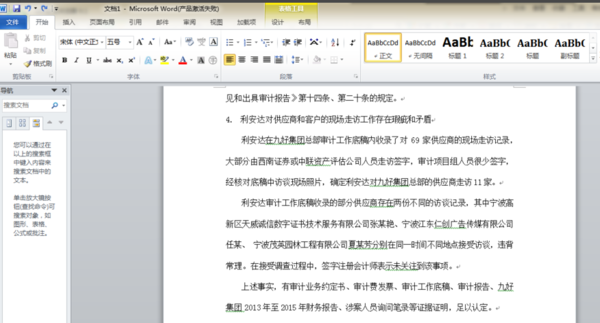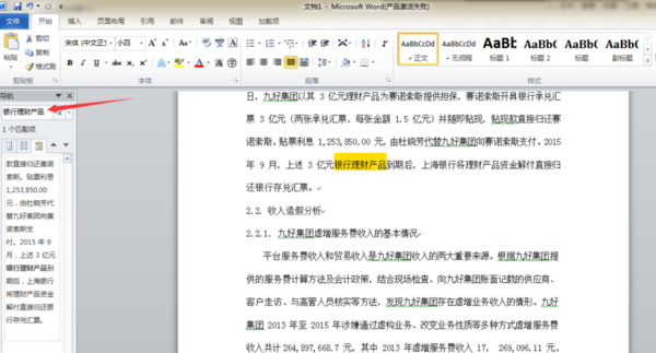 5、在如图所示位置输入你需要查找的内容,例如“银行理财产品”,就会搜索出文档中“银行理财产品”所在位置。