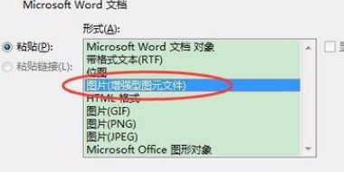 4、在弹出的 "选择性粘贴" 窗口中, 选择 "图片 (增强的元文件)", 单击 "确定"。