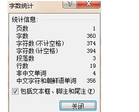 本主题中的部分内容可能不适用于某些语言。 如果仅统计选定文本的字数,请选定要统计的文本。如果不选定任何文本,Microsoft Word 将统计整篇文档的字数。 在“工具”菜单上,单击“字数统计”。 Word 会显示字数、段落数、行数和字符数等。 若要在统计信息中添加或删除脚注和尾注信息,请选中“包括脚注和尾注”复选框。提示