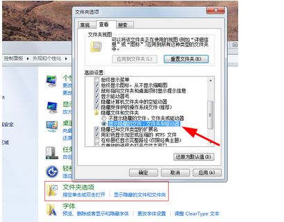 2. 找出”显示隐藏的文件、文件夹和驱动器“选项,点击确认