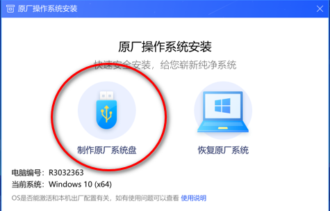 2、插入准备好的U盘,点击“制作原厂系统盘”。