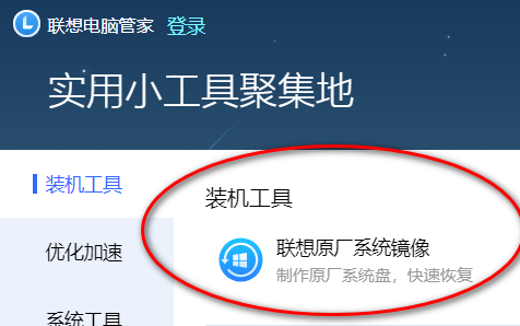 1、首先我们打开联想电脑管家,找到并点击“联想原厂系统镜像”。