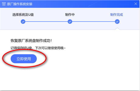 5、制作完成后,点击“立即使用”,联想电脑进行初始备份,完成。
