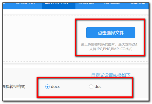 3、接着点击”选择文件“按钮添加要转换文字的图片,下方可以选择需要的word文档格式。