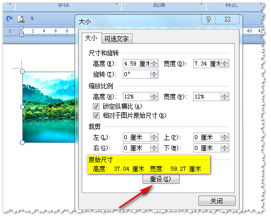 2、进入后,点击“重设”,恢复图片的原本尺寸。