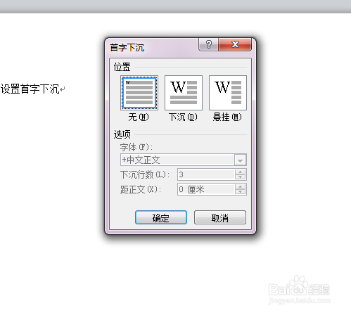 ③弹出首字下沉设置框,我们可以进行更加详细的设定。