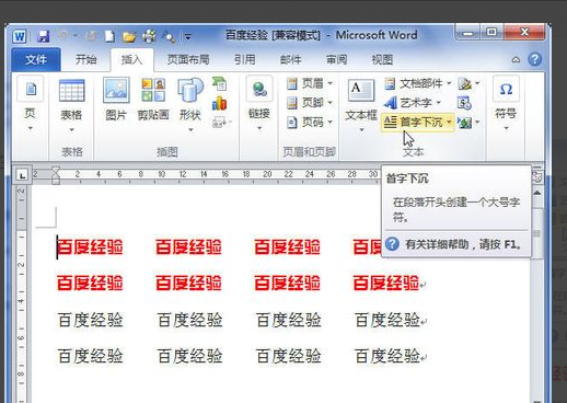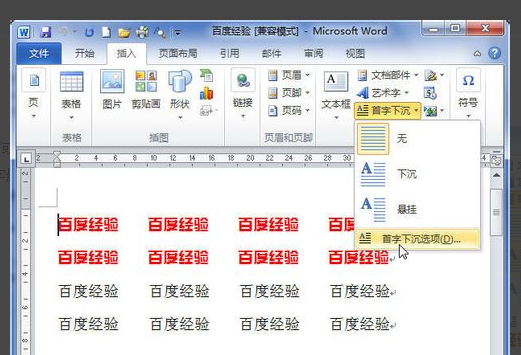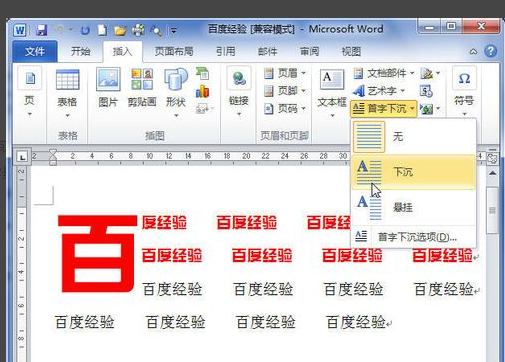 word2010首字下沉方法:
