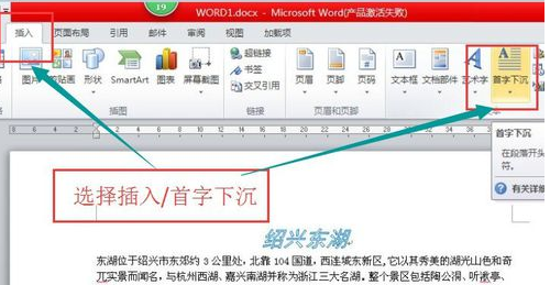 word2010首字下沉怎么设置