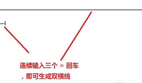 2、连续输入三个 “=”回车 ,即可生成双横线。