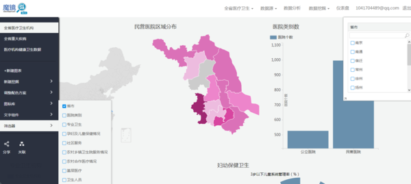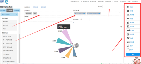 数据可视化工具,推荐大数据魔镜,免费版的数据可视化效果就有很多,还有分析、挖掘功能。