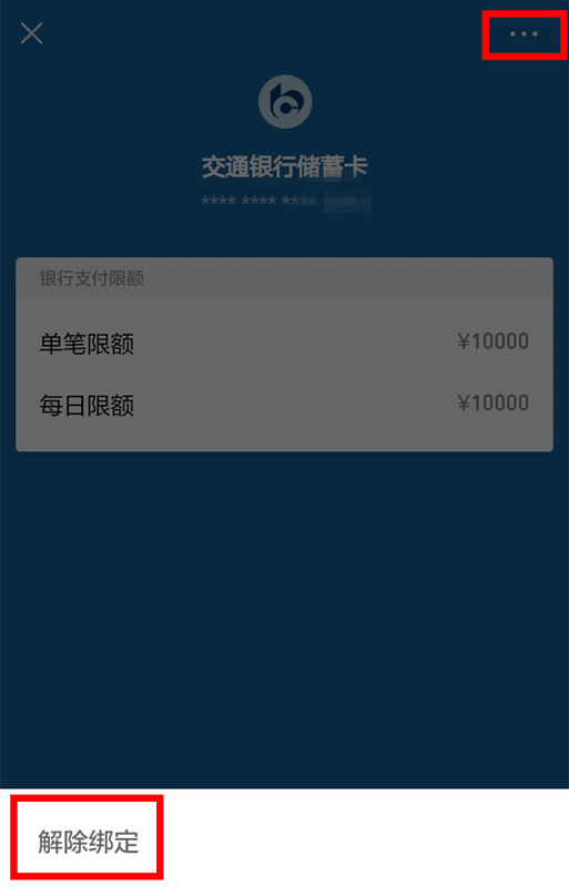 点击进入某一张银行卡,点击右上角,会出现如下方所示的“解除绑定”,点击即可。