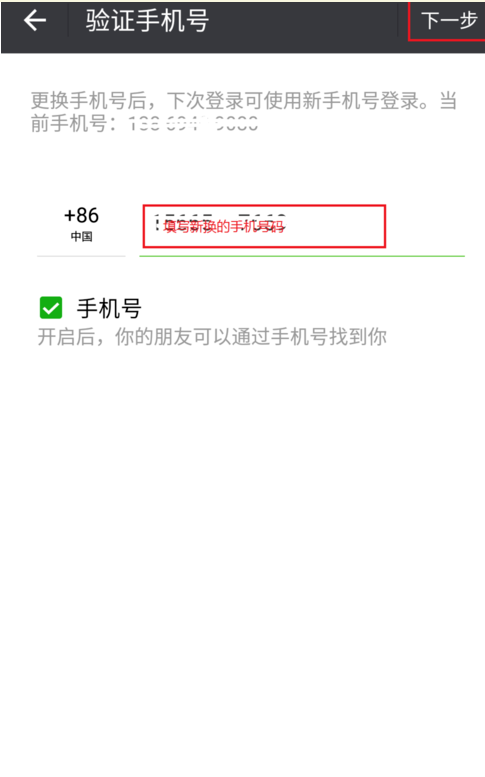 下一步填写新的手机号,然后确定即可!